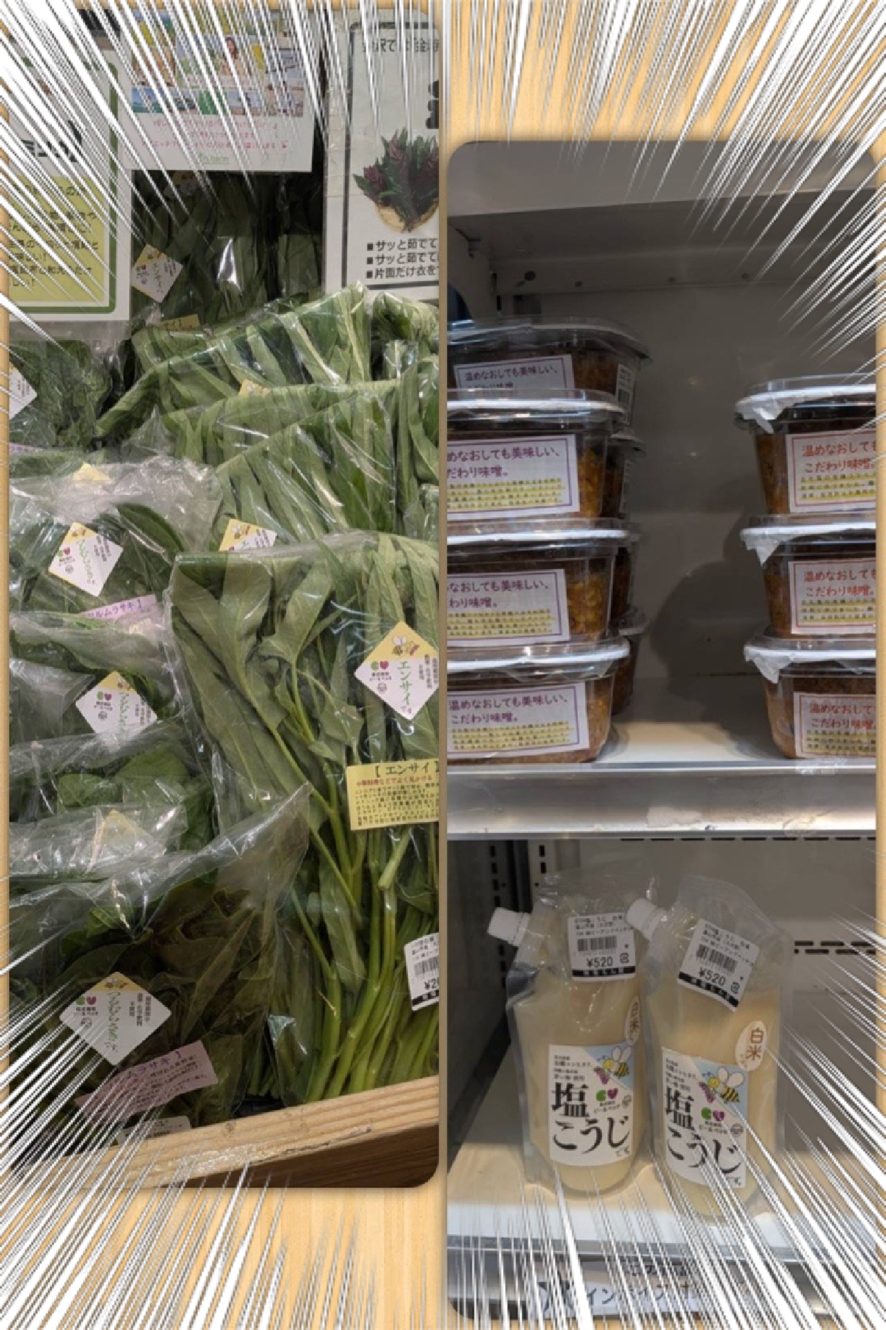 エンサイ・ツルムラサキ・味噌・塩麴を納品しました。