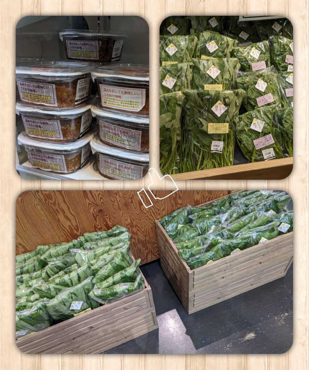 本日、地場もん屋さんと黒崎屋さんにエンサイ、ツルムラサキ、お味噌を納品しました。