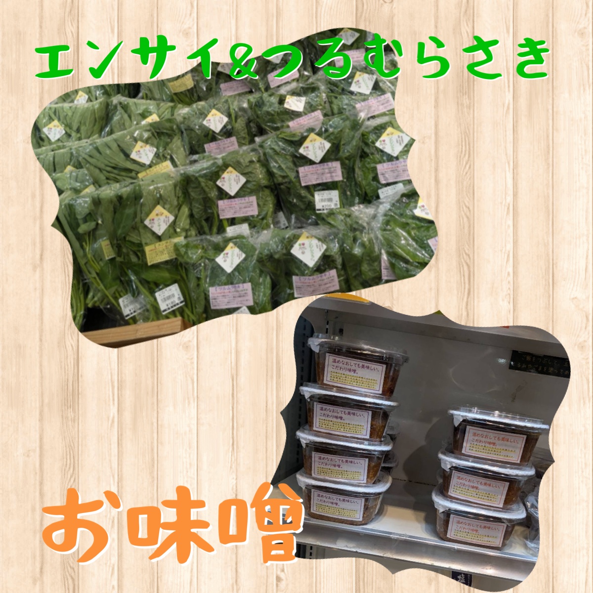 本日、黒崎屋さん・地場もん屋さんへ、エンサイ・ツルムラサキ・蒸し大豆・白米味噌を納品しました。