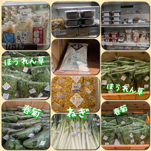 ・塩こうじ(白米)、甘こうじ(白米)、味噌(白米・玄米)、蒸し大豆、ほうれん草、春菊、ねぎ