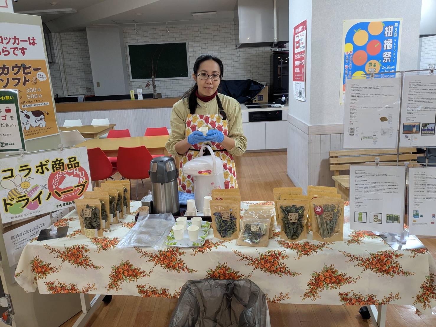 ハーブティーの試飲会とジェノベーゼの試食しております。